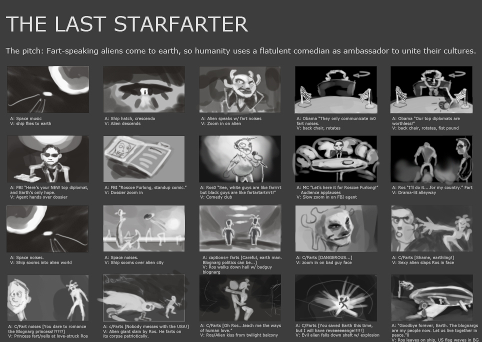 Hence, today I am taking it easy. But I still felt so jazzed about fast production that I felt like making some more stuff. So here’s storyboards for an old pitch of mine, which I pumped out in about 2 hours this morning. Stay tuned for more content from my adventures in Vancouver!