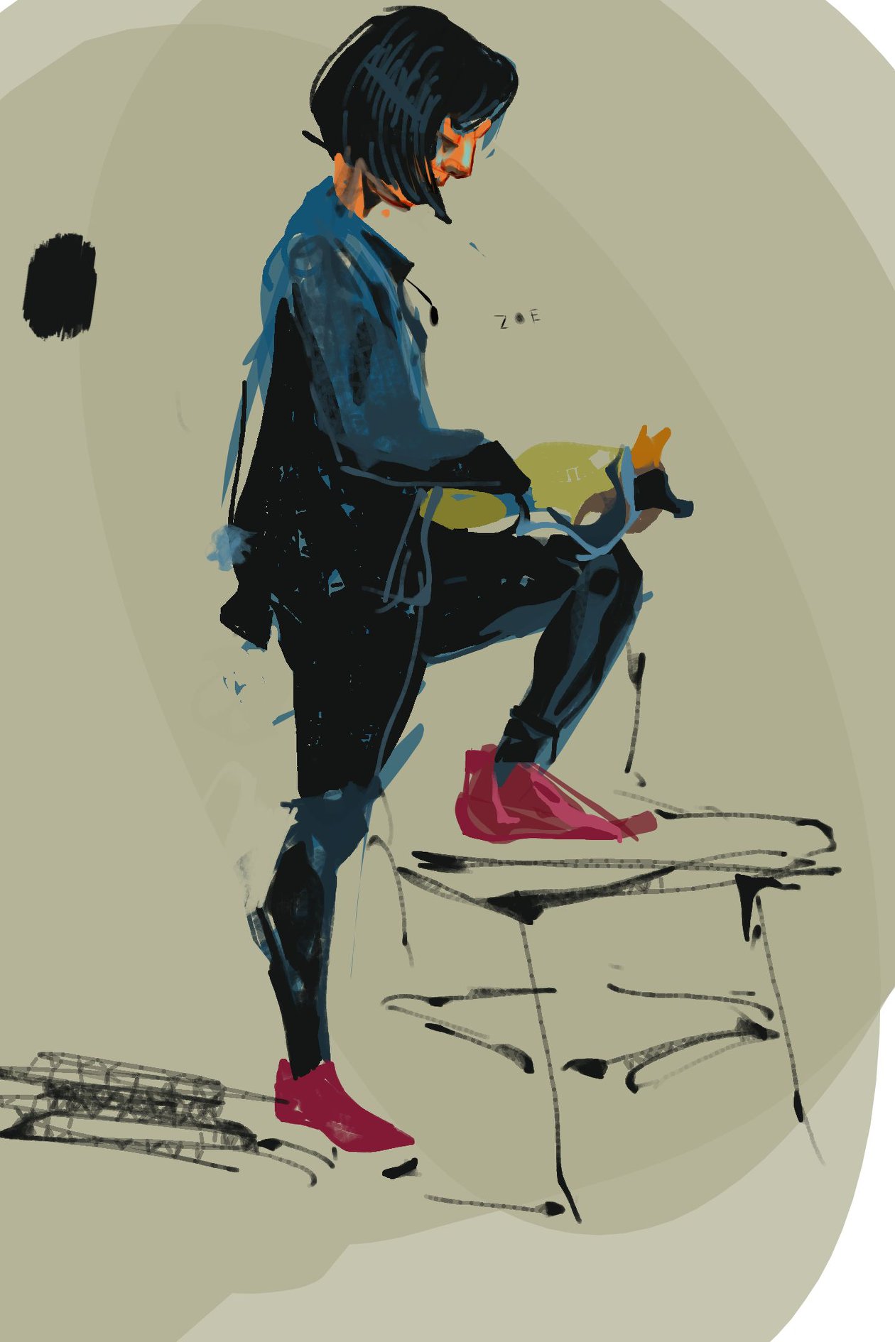 - Drew in Blender’s Grease Pencil with vertex colors and max jitter and randomness